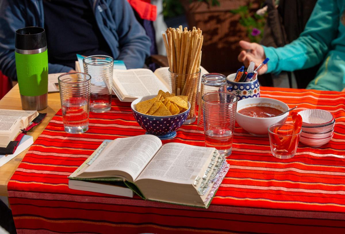 Bad Vilbel: Hauskreis, eine Gruppe evangelischer Christen trifft sich regelmäßig in einer Privatwohnung oder Wohnhaus von einem Mitglied des Kreises um gemeinsam über private Dinge und Glaubensfragen zu sprechen und gemeinsam zu beten. Hier bei Familie Mühlhans in der Feststraße 21. // Rolf Oeser / fundus-medien.de